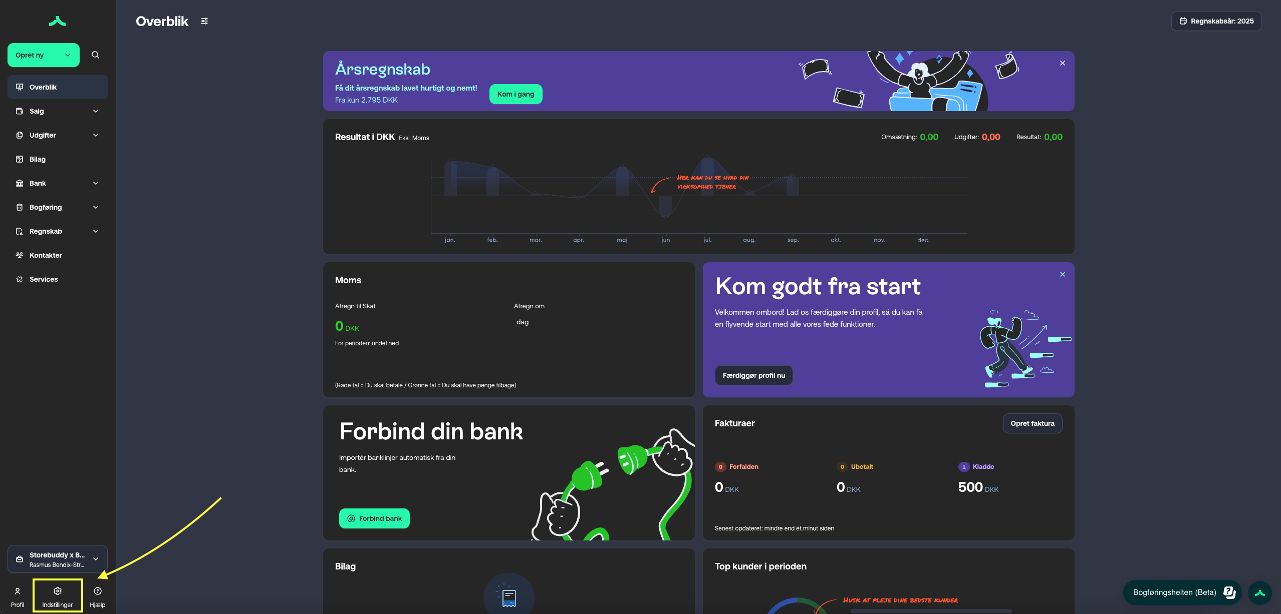 1. Gå til Indstillinger nederst til venstre i Billy: