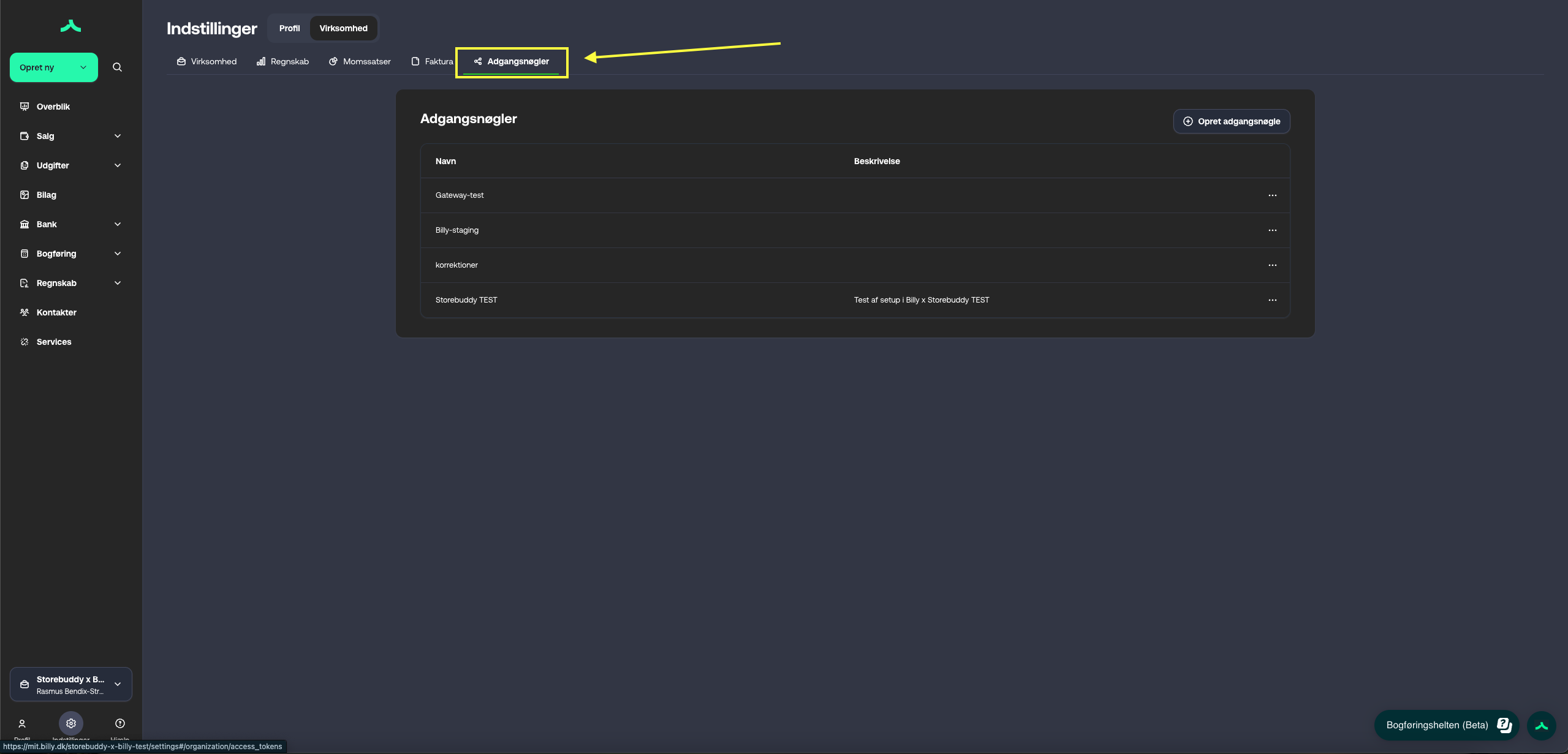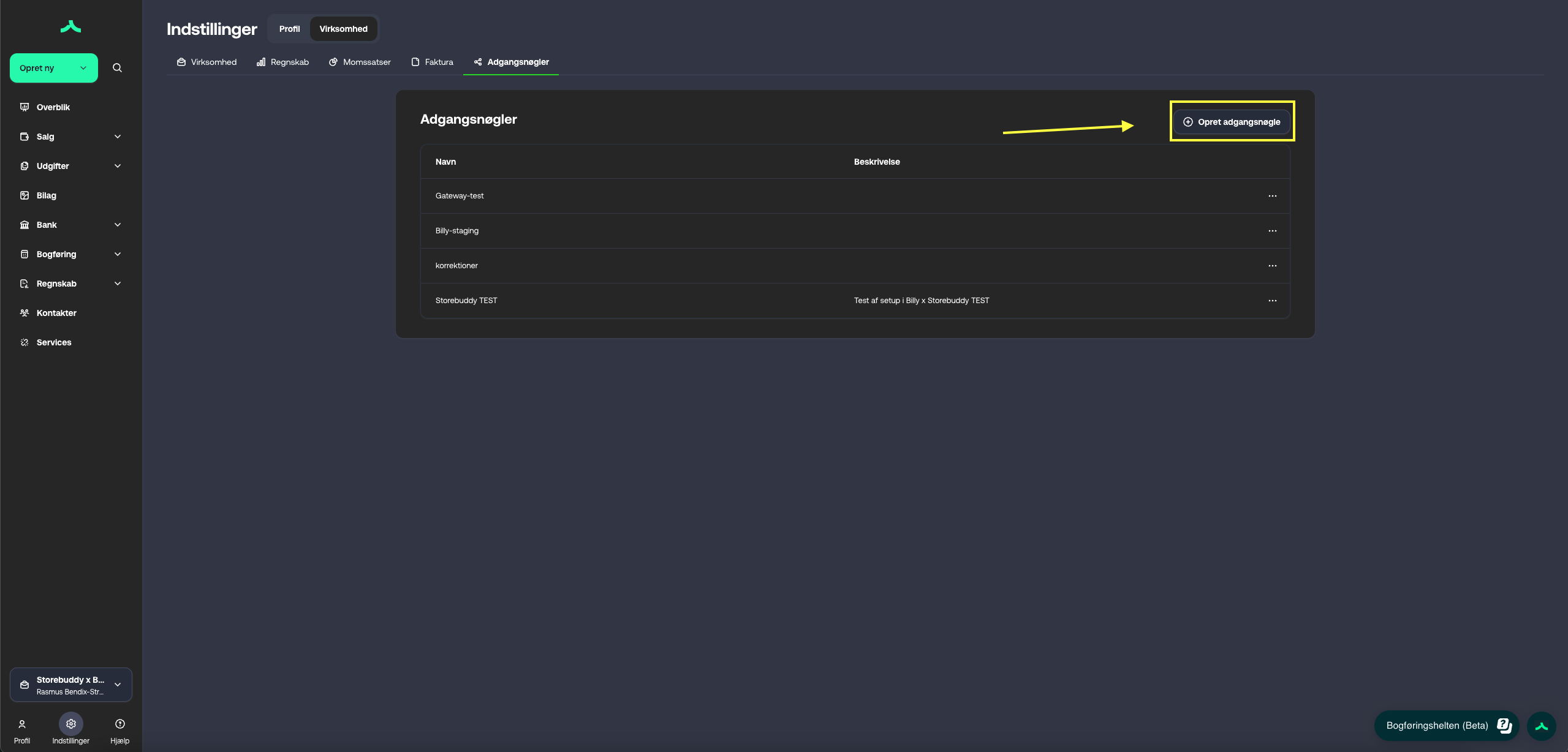 Ved du ikke, hvad din API-nøgle er så følge guiden 'Opret API-nøgle til Storebuddy i Billy' nedenfor
