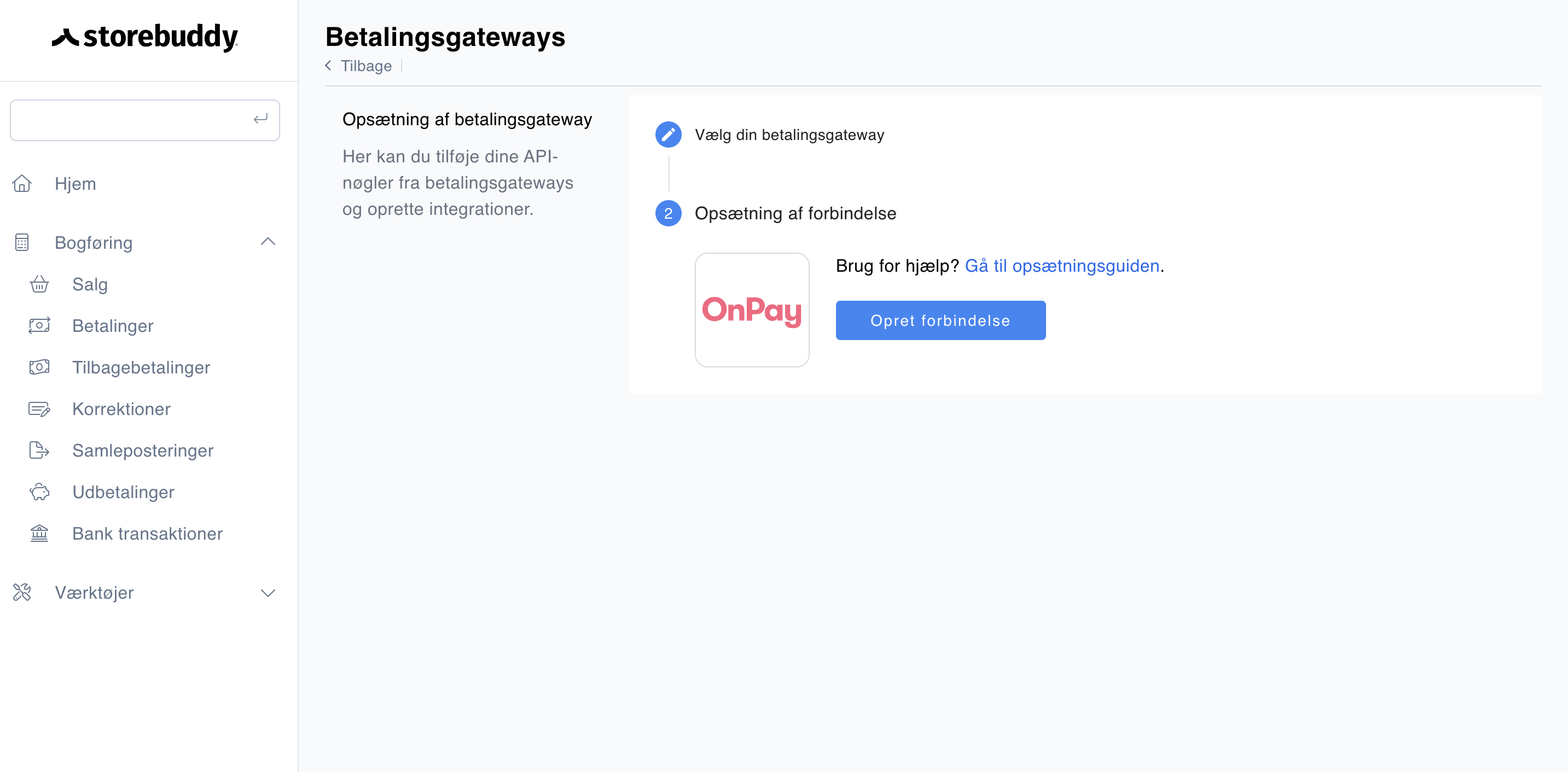 Tryk på 'Integrationer' i toppen og vælg 'Betalingsgateway'