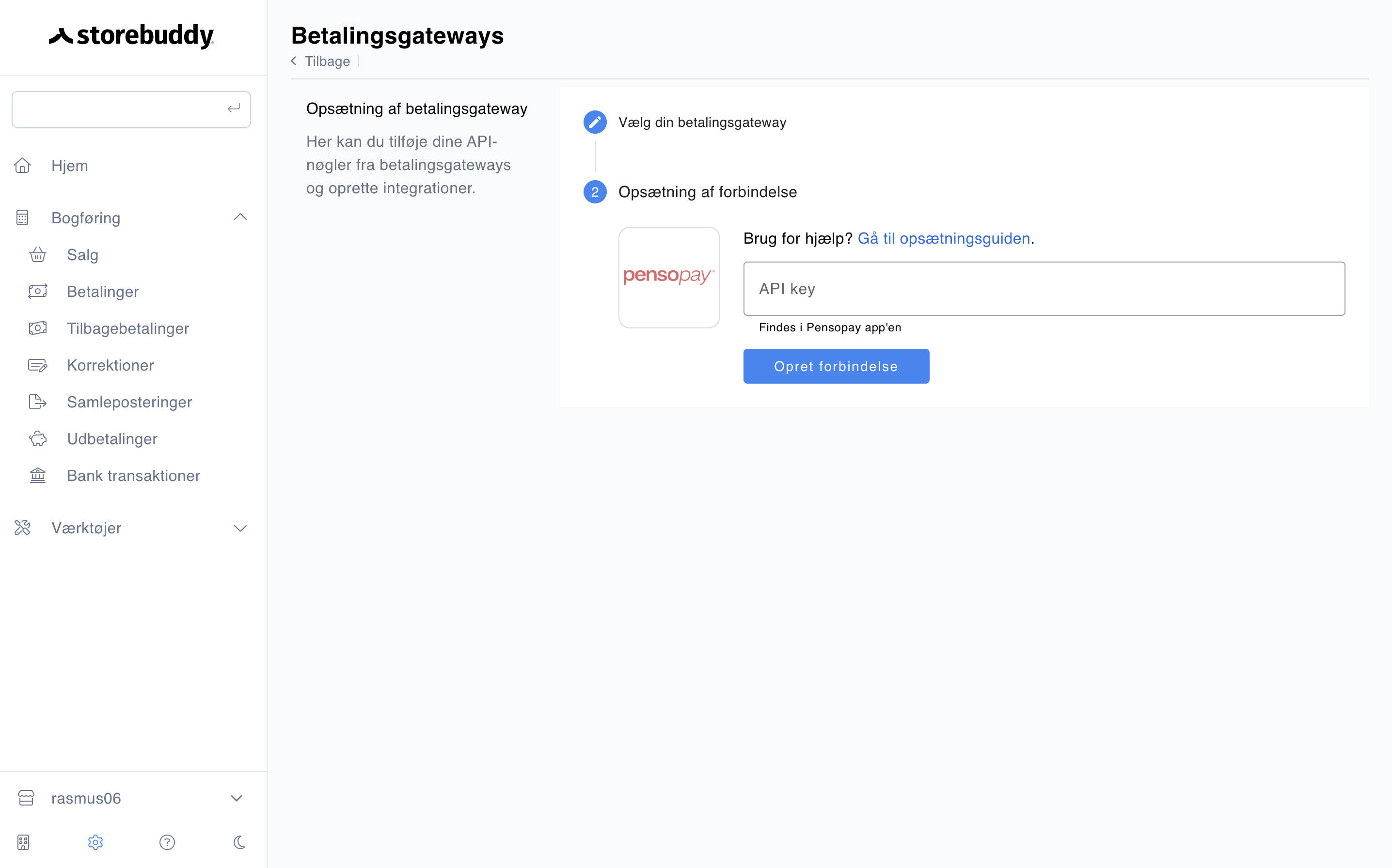 Når det er klaret, kan du tilføje Pensopay inde i Storebuddy. Det kan du gøre ved at følge nedenstående steps;