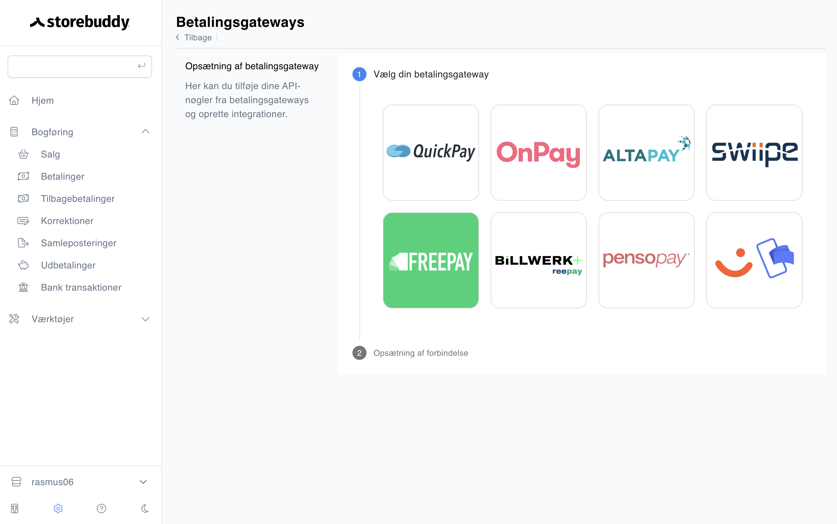 Når du har fået oprettet API-nøglen i Quickpay er du klar til at indsætte den i Storebuddy. Det gør du ved at følge nedenstående steps;