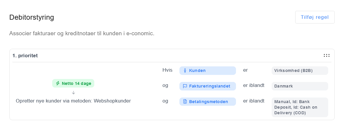 Ved oprettelse af en ny kundeoprettelsesregel skal du tage stilling til 3 ting: